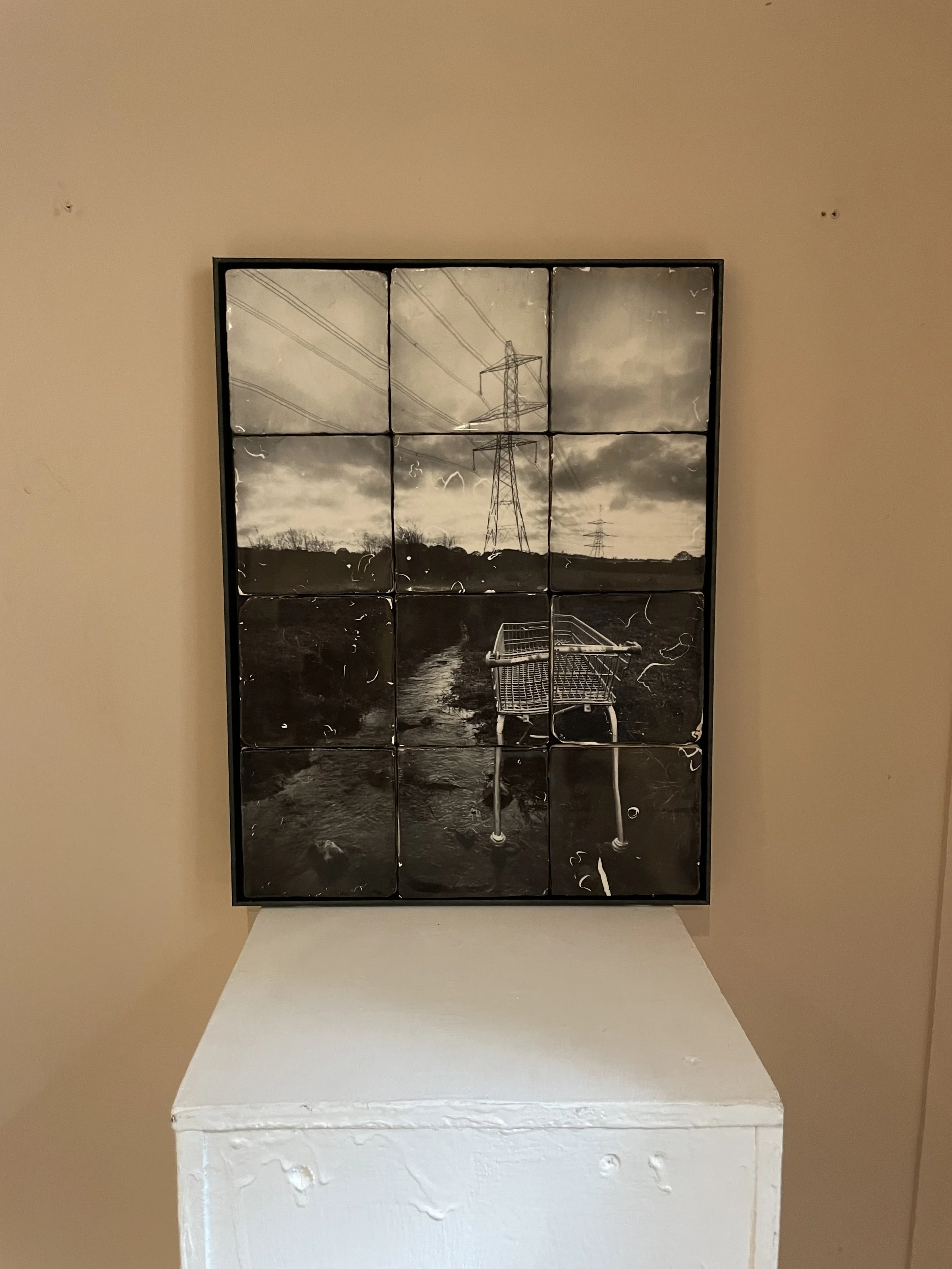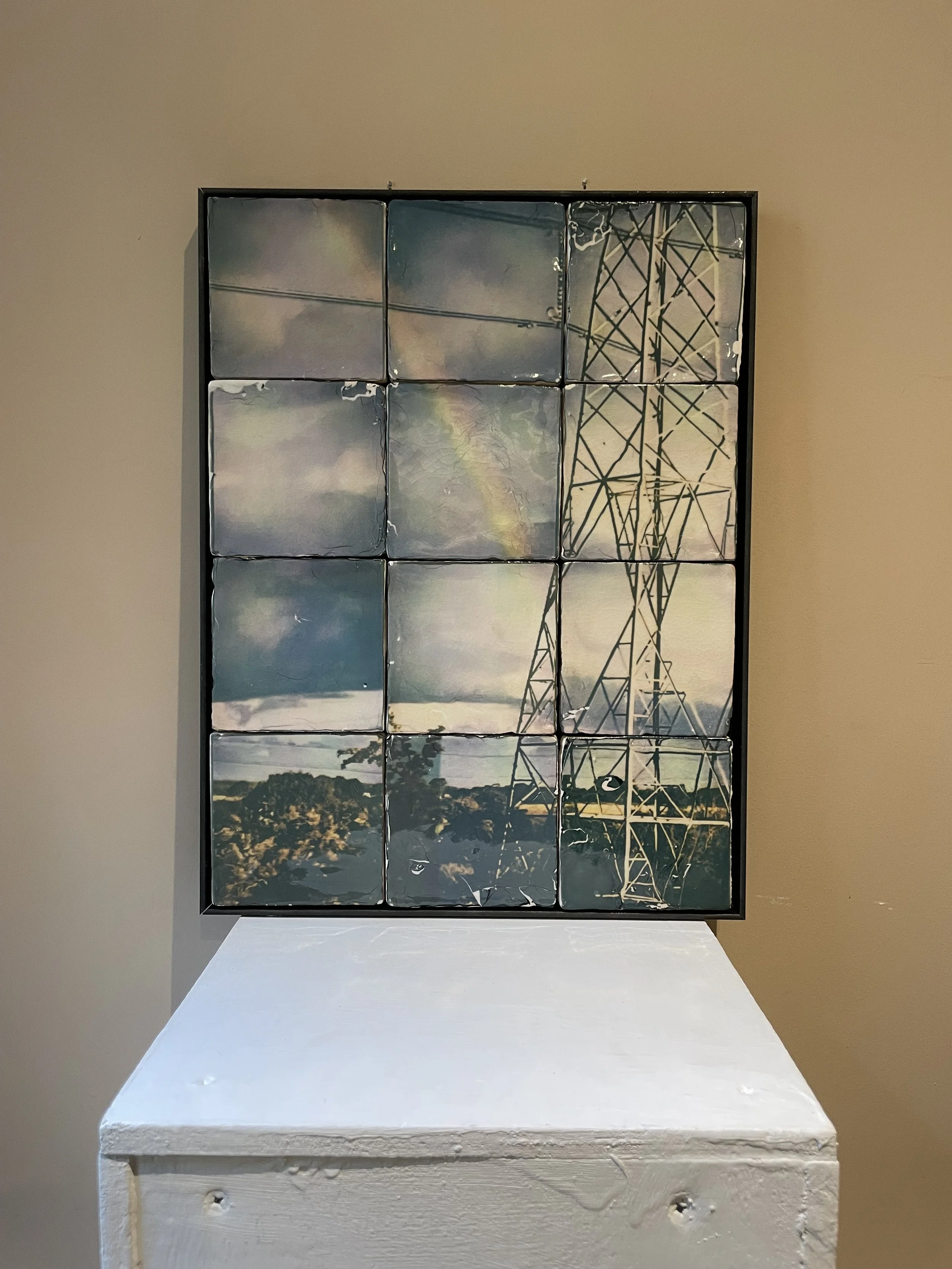 Polaroid lift on ceramic tile, mild steel, plywood.